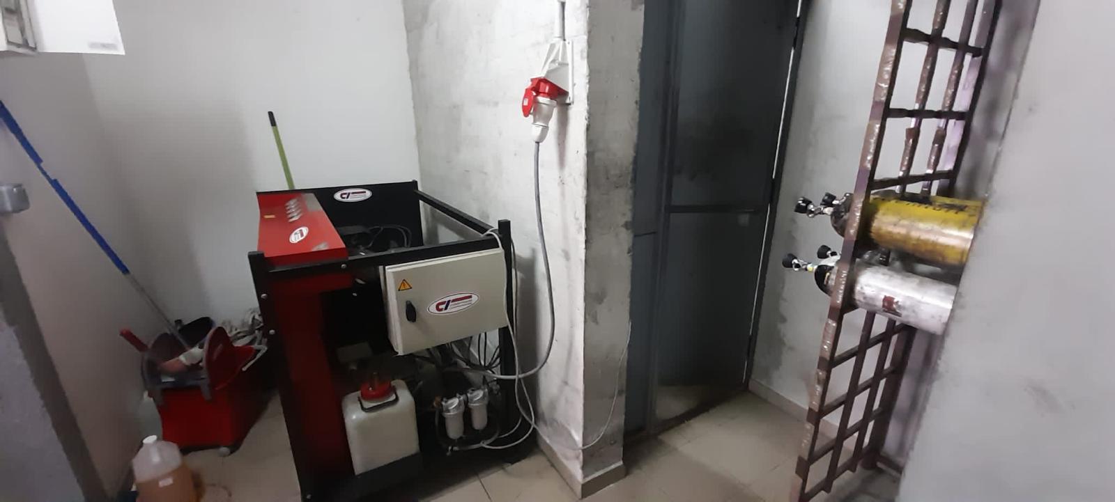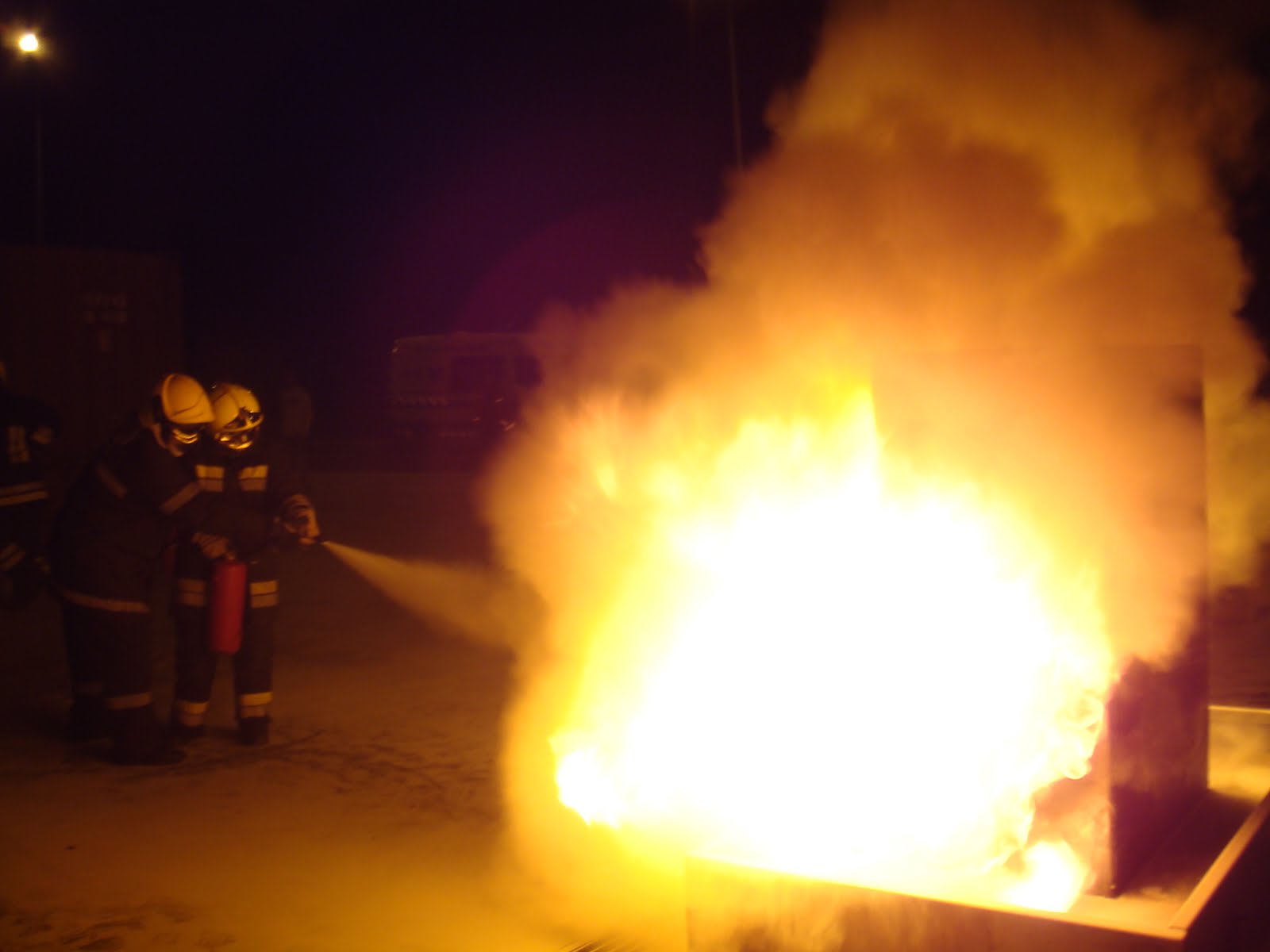 3 – Secção com uma tina para treino com espumas e para treino com extintores temos dois simuladores. Um de rampa para pó químico e o outro um armário para CO2.