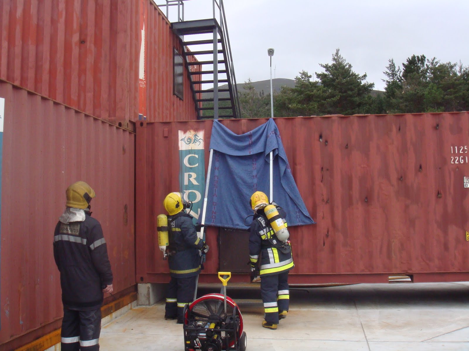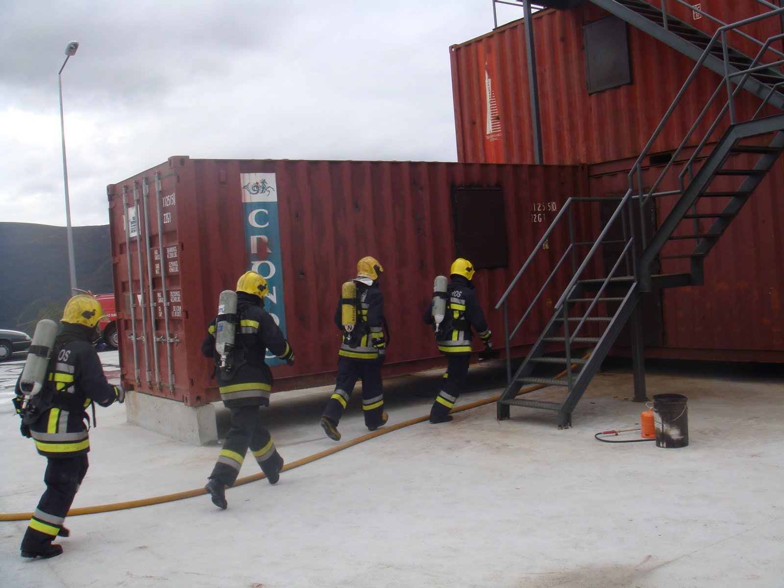 2 – Estrutura construida em dois contentores de 12 metros, para adaptação aos ARICAS e treino em espaços confinados, com fumo artificial e ainda com uma arrecadação para madeira e outra para outros equipamentos,